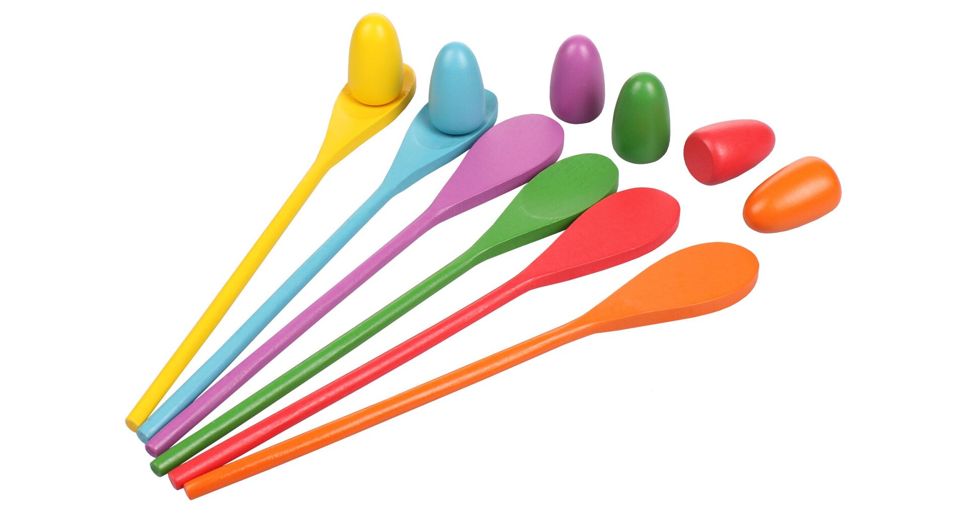 Komplekt koosneb kuuest erinevat värvi lusikast ja munast. Kõik on valmistatud puidust, seega komplekt ei purune kergesti. Ideaalne võistlusmäng suvelaagritesse, koolidesse, lasteklubidesse jne.