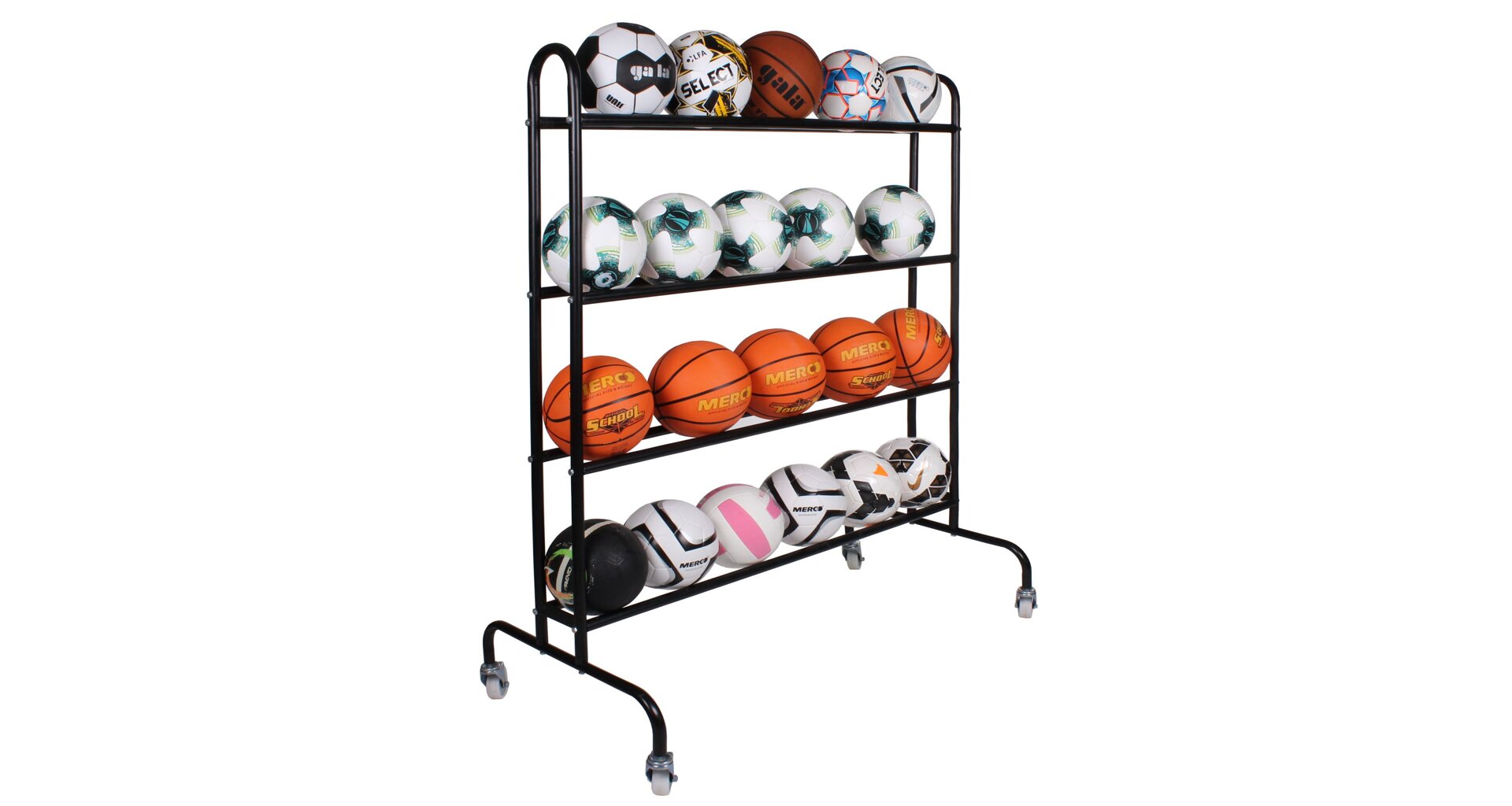 Riiulile mahub kuni 20 spordipalli (sõltuvalt nende suurusest) ja tänu tugevale konstruktsioonile sobivad need ka raskuspallidele.