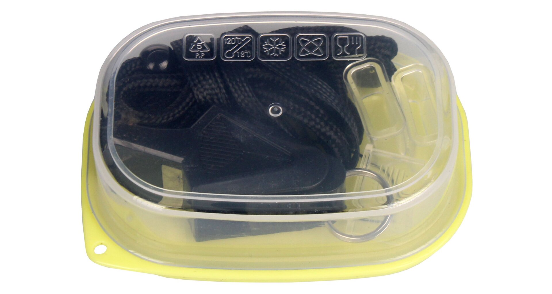 ABS-plastist vile tarnitakse praktilises plastkarbis, mis sisaldab ühte pikemat reguleeritavat paela kaela ümber, ühte lühemat randmepaela ja kolme silikoonist huulikut.